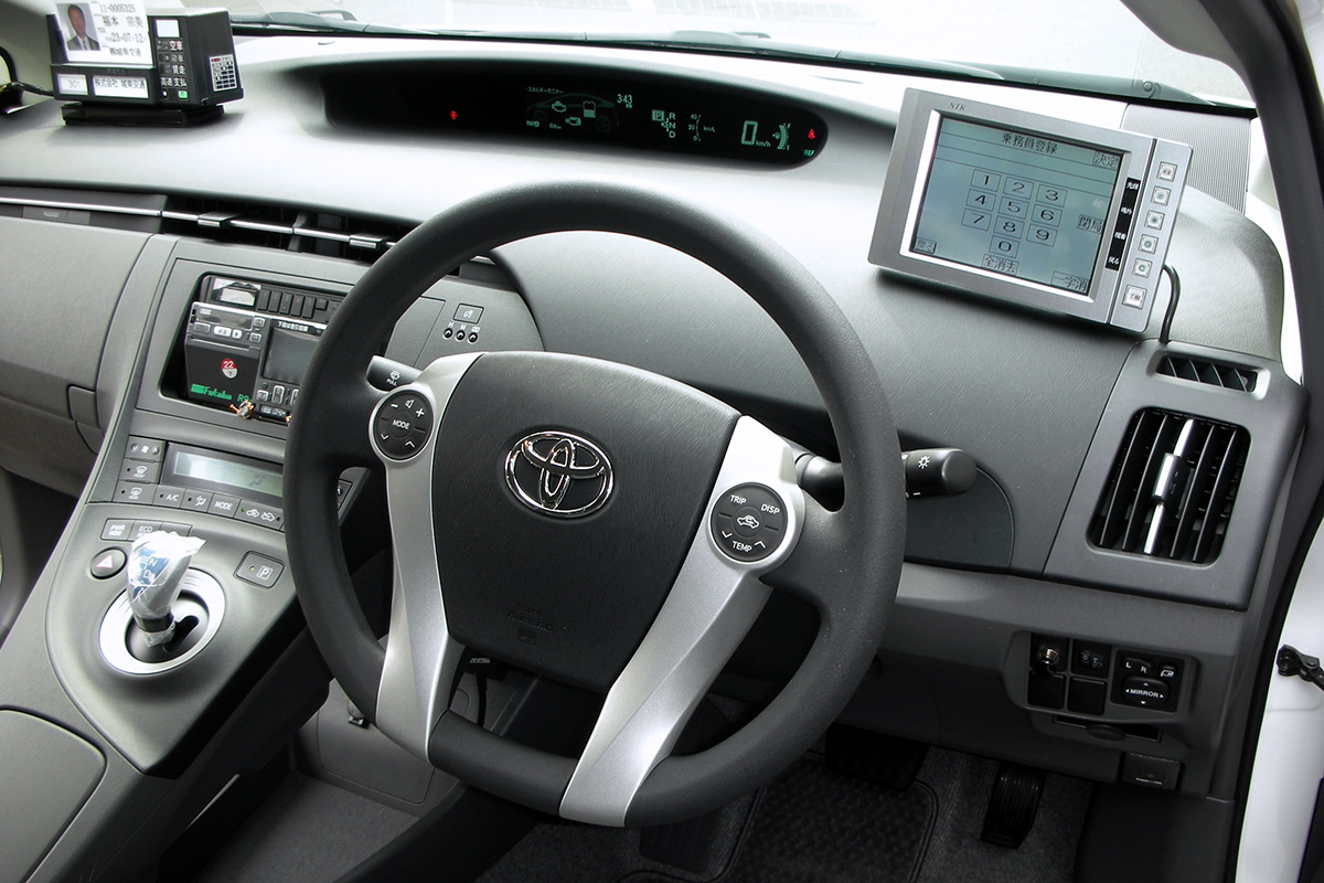 サイドの「J」のマークが目印のハイブリッド(プリウス)タクシー。